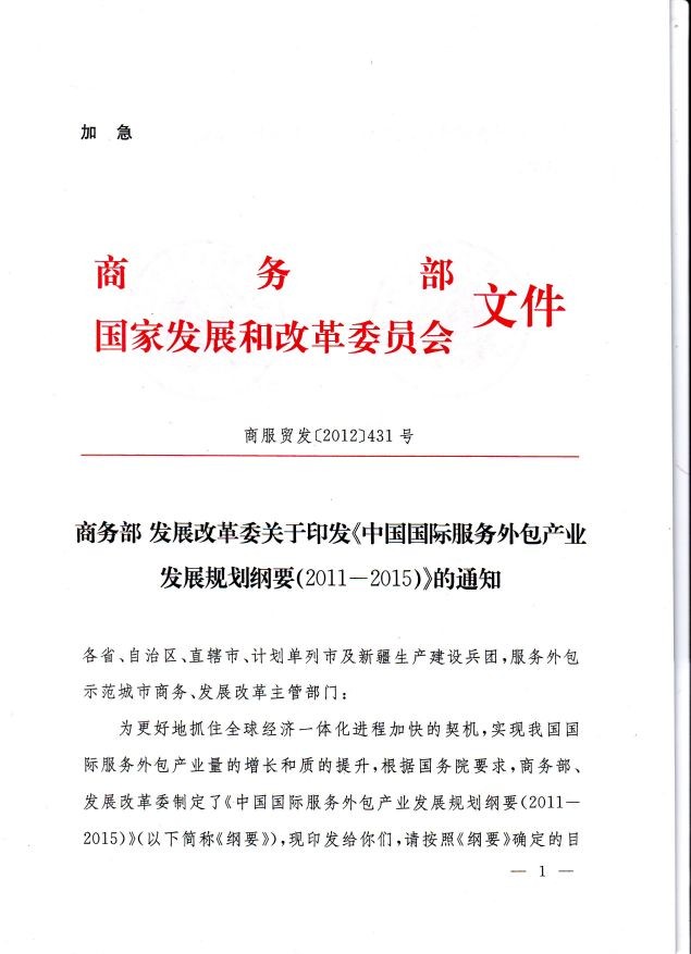 中国国际服务外包产业发展规划纲要(2011-2015)