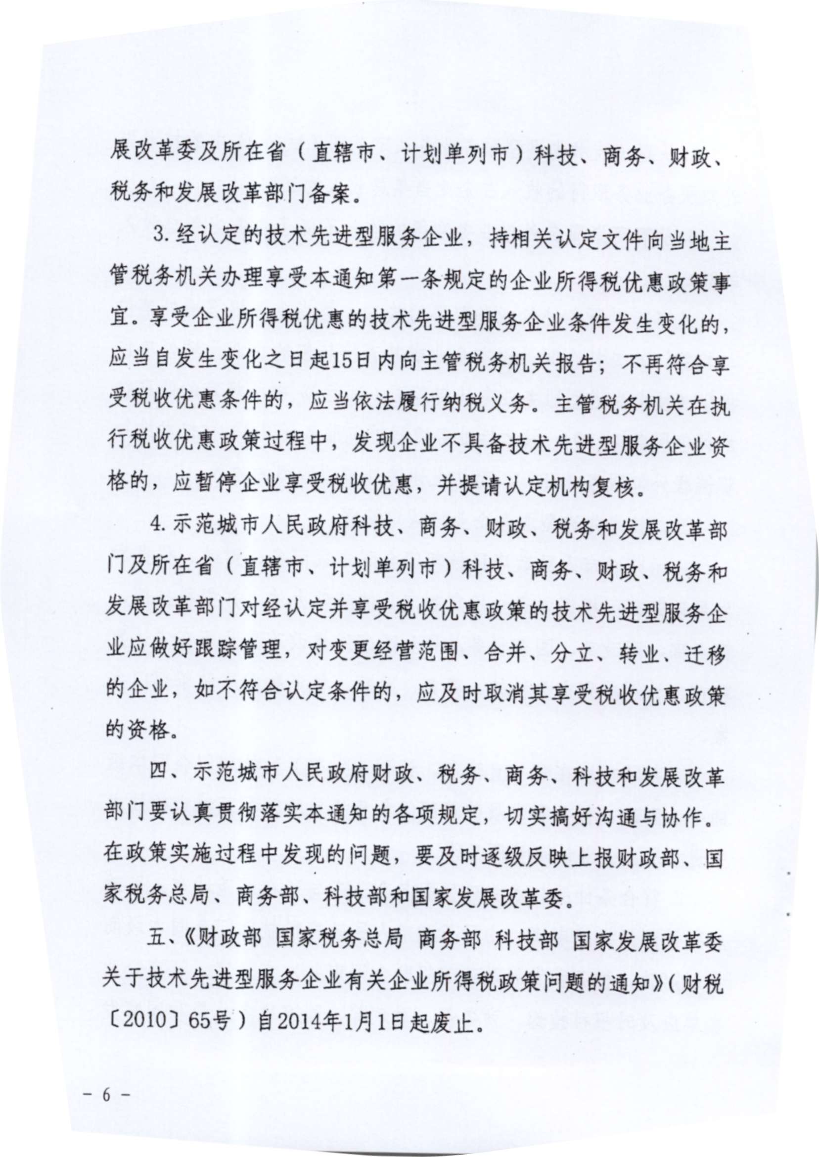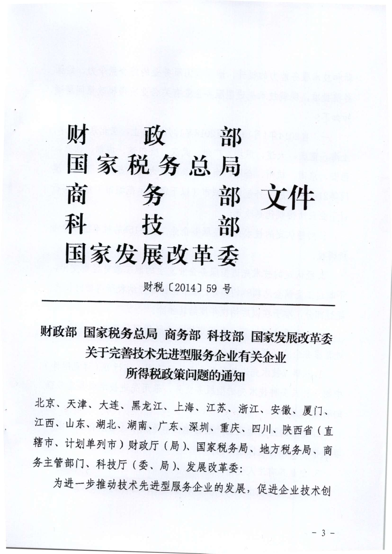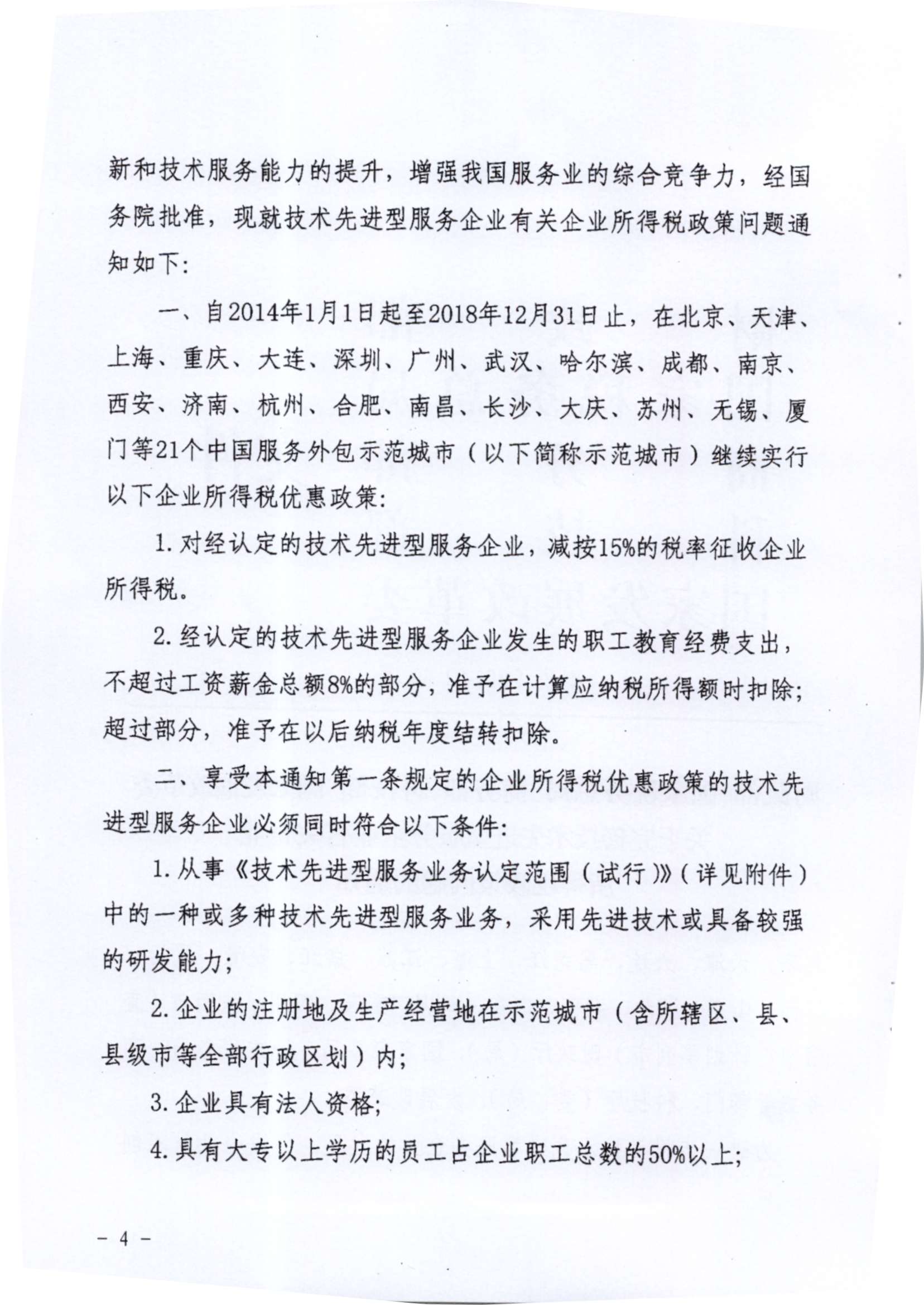 关于完善技术先进型服务企业有关企业所得税政策问题的通知