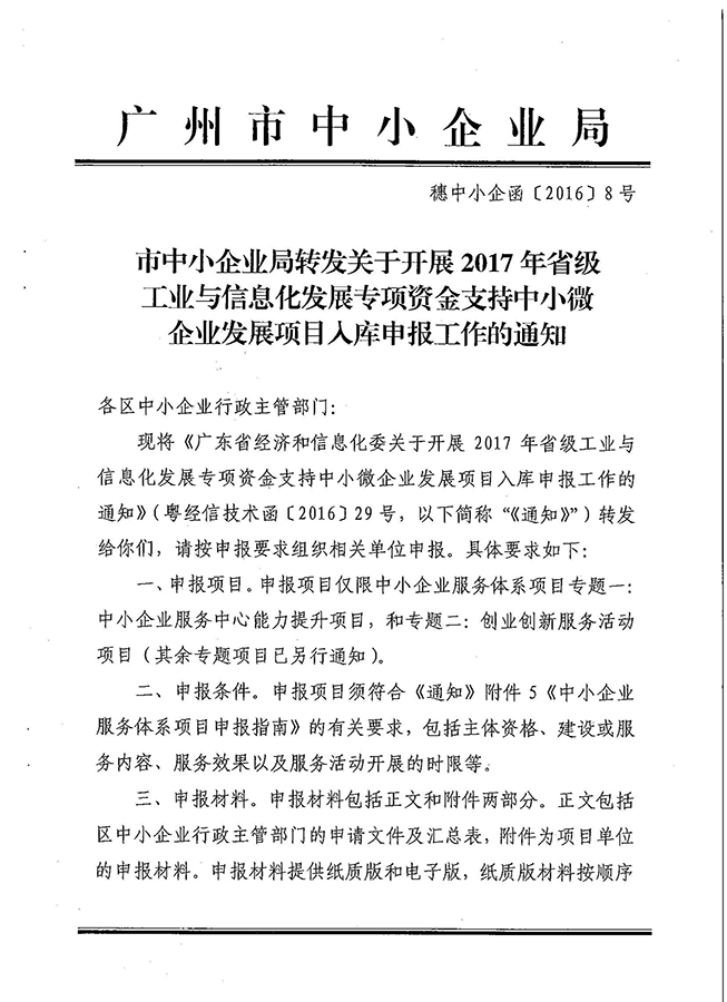 转发:广东省经济和信息化委关于开展2017年省级工业与信息化发展专项资金支持中小微企业发展项目入库申报工作的通知