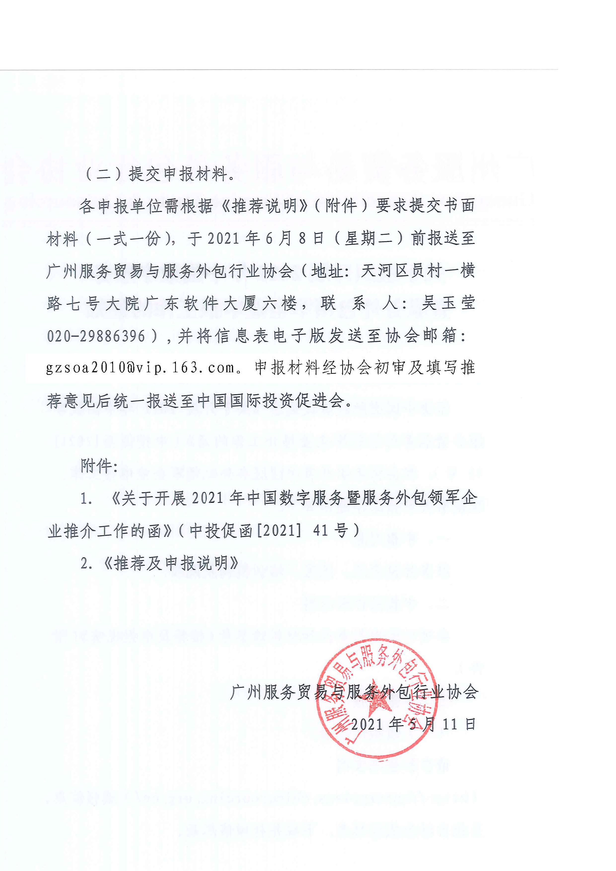 关于组织开展2021年中国数字服务暨服务外包领军企业申报工作的通知